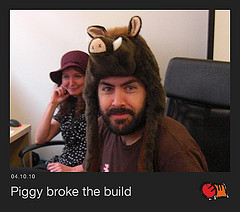 For this [CI] to work, developers need to avoid treading on one another’s toes by attempting to integrate changes at the same time. Lots of teams use a build token, which can be any object that makes it obvious to the rest of the team that there’s an integration in progress. Teams have a bit of fun with this, which helps establish the CI process as a team ritual. We’ve seen teams use a rubber chicken, a moo cow, funny hats, and even a “Sword of Integration” made from index cards.